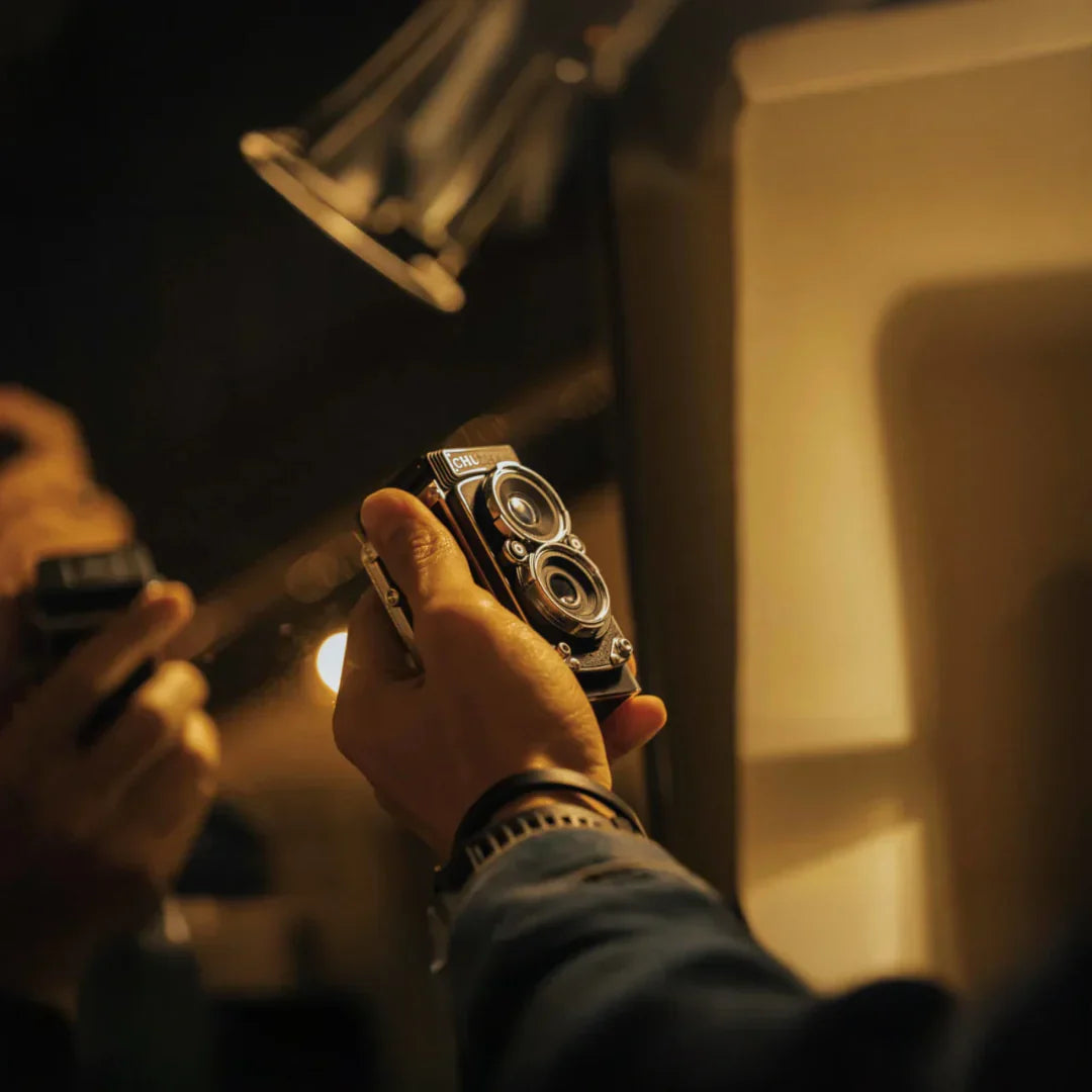 The Chuz Flix™ camera captures the spirit of classic TLRs, all in a compact design that fits in your pocket—bringing nostalgic vibes wherever you go.