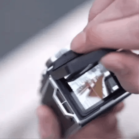 The second lens allows for waist-level composition, offering a unique and engaging way to frame shots—perfect for candid street photography or artistic angles.